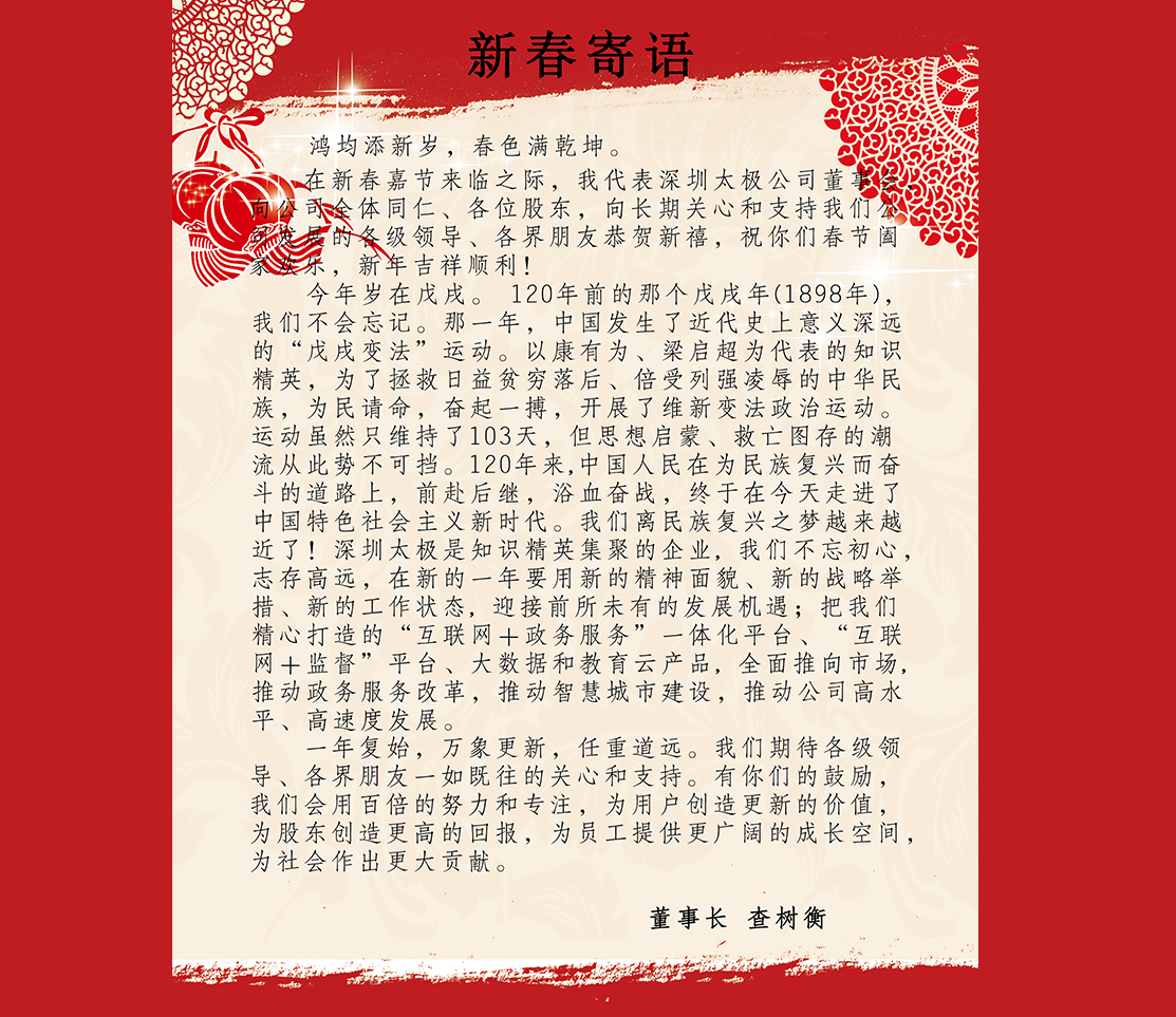 同聚新征程,共筑太極夢! 2018年1月19日,深圳太極云軟技術股份有限公司“2017年終總結大會暨2018年新春聯歡會” 在深圳鴻豐大酒店圓滿舉行。近300名員工共聚一堂,總結過去一年的工作,并為新的2018年厲兵秣馬,鼓勁加油。 未到現場的全國各地200多…